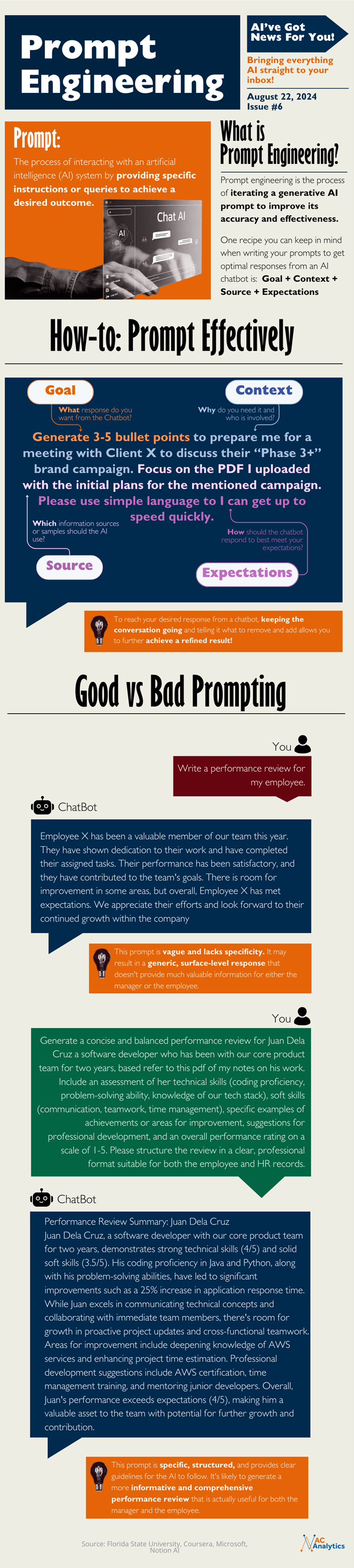 Ever wondered how to get better results from AI chatbots? Welcome to the world of prompt engineering - the key to unlocking AI's full potential! In this newsletter, we'll show you simple techniques in crafting effective prompts, boosting your productivity and transforming your AI interactions.