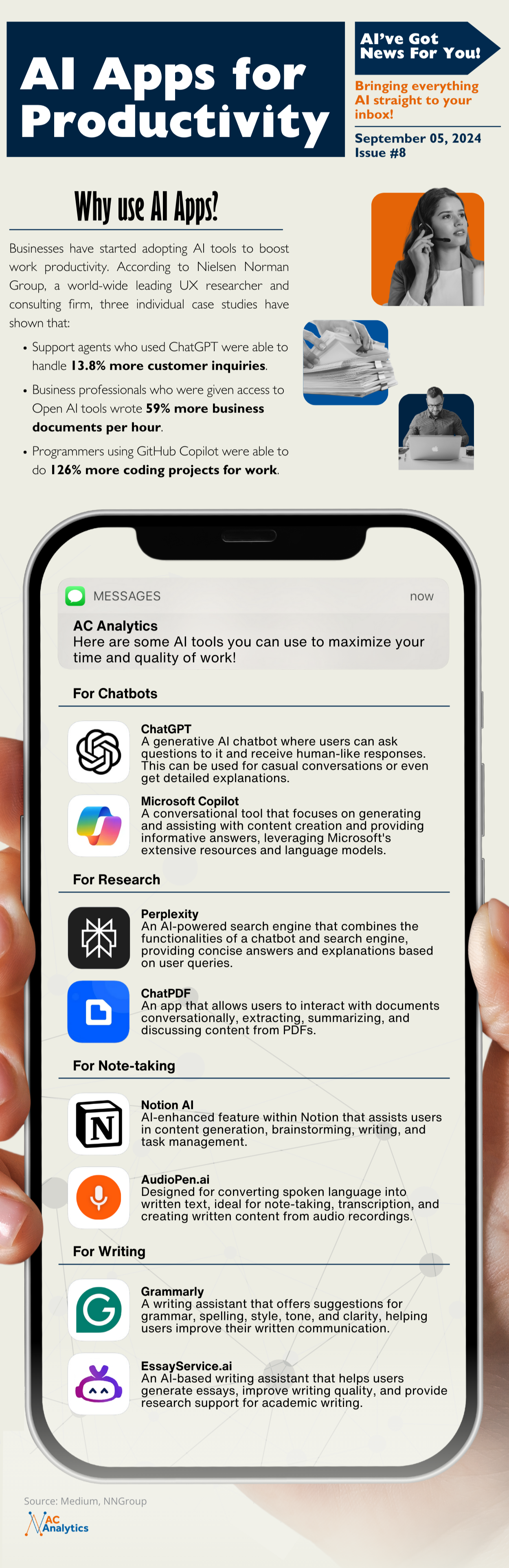In this newsletter, we will see how AI improves productivity through quantitative evidence and discover AI apps that are beneficial in various fields like research, writing, and more.