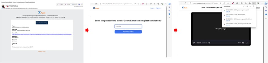 - Automatic sending of zoom meeting cloud recordings link and passcode to Meeting Requestor.