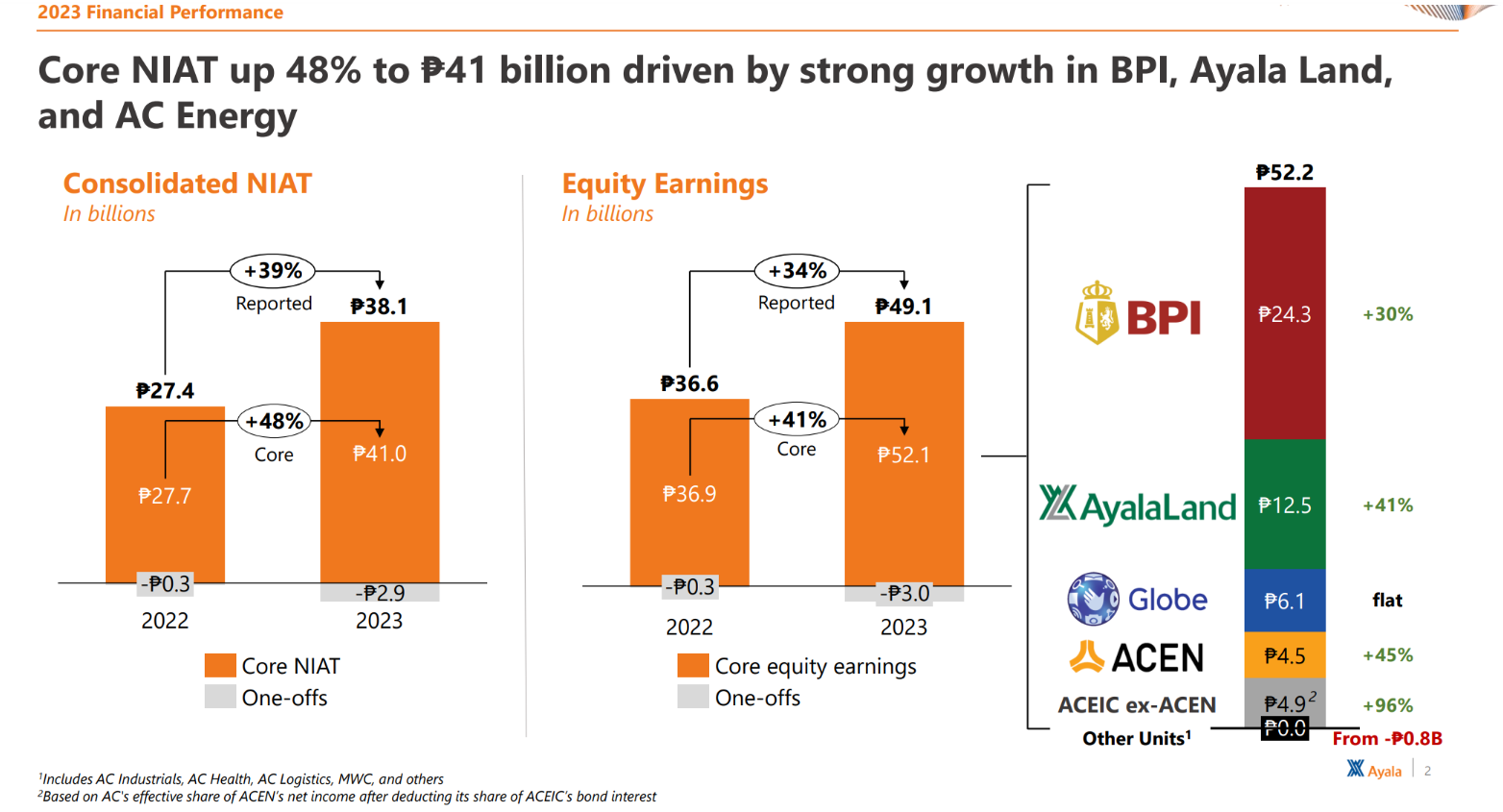 Said Ayala President and CEO Cezar P. Consing: “We succeeded in getting aggregate core earnings to exceed the pre-pandemic high. Now we focus on getting better operating and financial results from each of our businesses, and on rationalizing the portfolio where it makes sense to do so.”