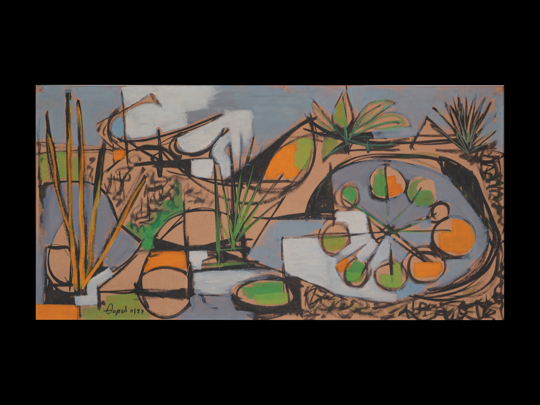 Tropical Garden shows Fernando Zóbel’s playful use of lines and intense hues, marking a transition towards abstraction.